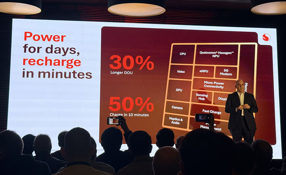续航也是一大亮点,骁龙可穿戴平台至尊版可实现日常使用时长(DOU)延长30%、10分钟充电约50%。