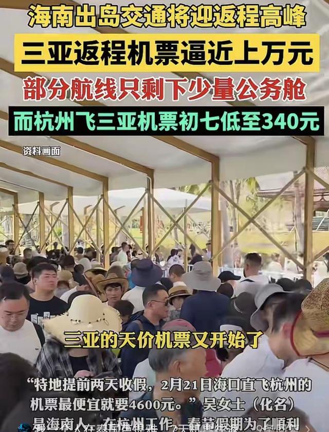 先说机票,平时上海到三亚,经济舱也就一千出头,春节直接飙到四五千。你以为买早鸟票能省点?太天真,平台一边推“限时特价”,一边偷偷加价,谁还不是个信息差的韭菜。更魔幻的是,返程票价比去的时候还高,活生生把你留在海南,生怕你跑了。