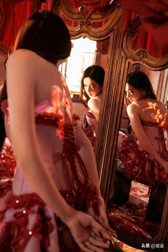 - 裙装设计:粉调基底+红色蝴蝶结绑带,甜辣感拉满,鱼骨束腰版型完美勾勒腰线,短款裙摆露出腿部线条,又甜又欲。