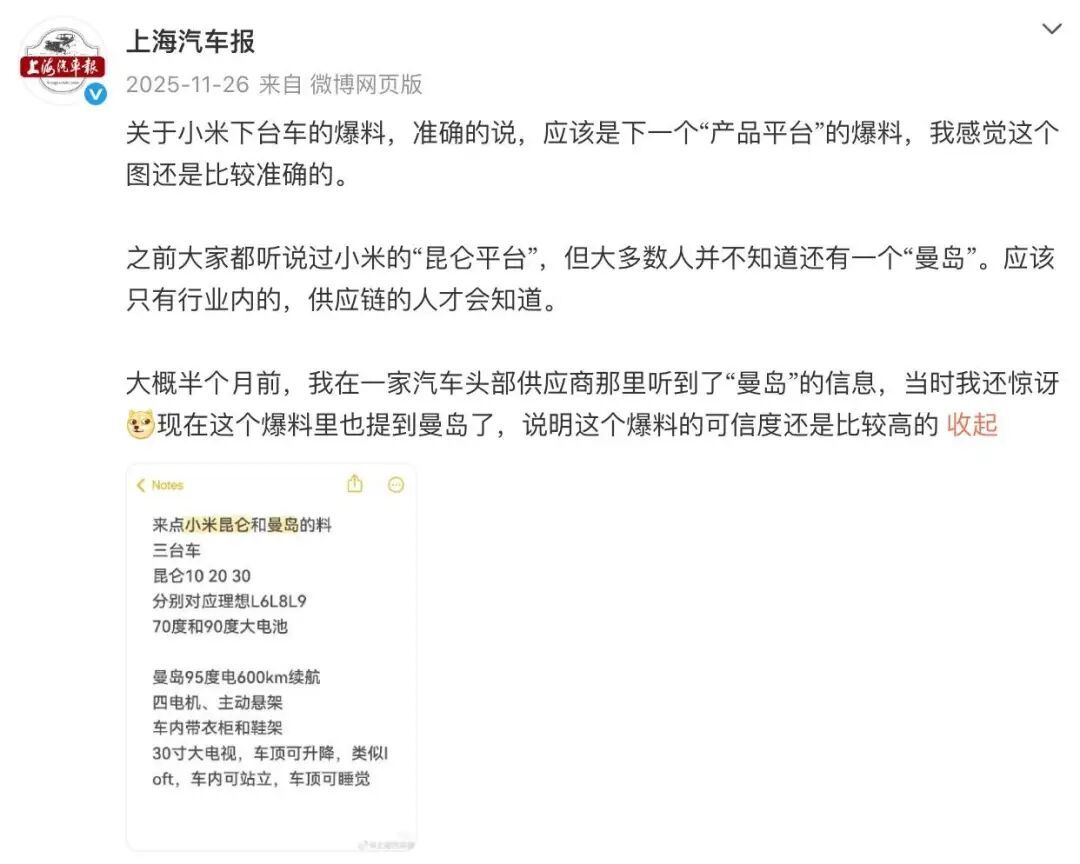 这些描述远超常规旗舰轿车或 SUV 的想象边界,因此业内当时普遍推测,「曼岛」更像是一款深度定制的房车产品。