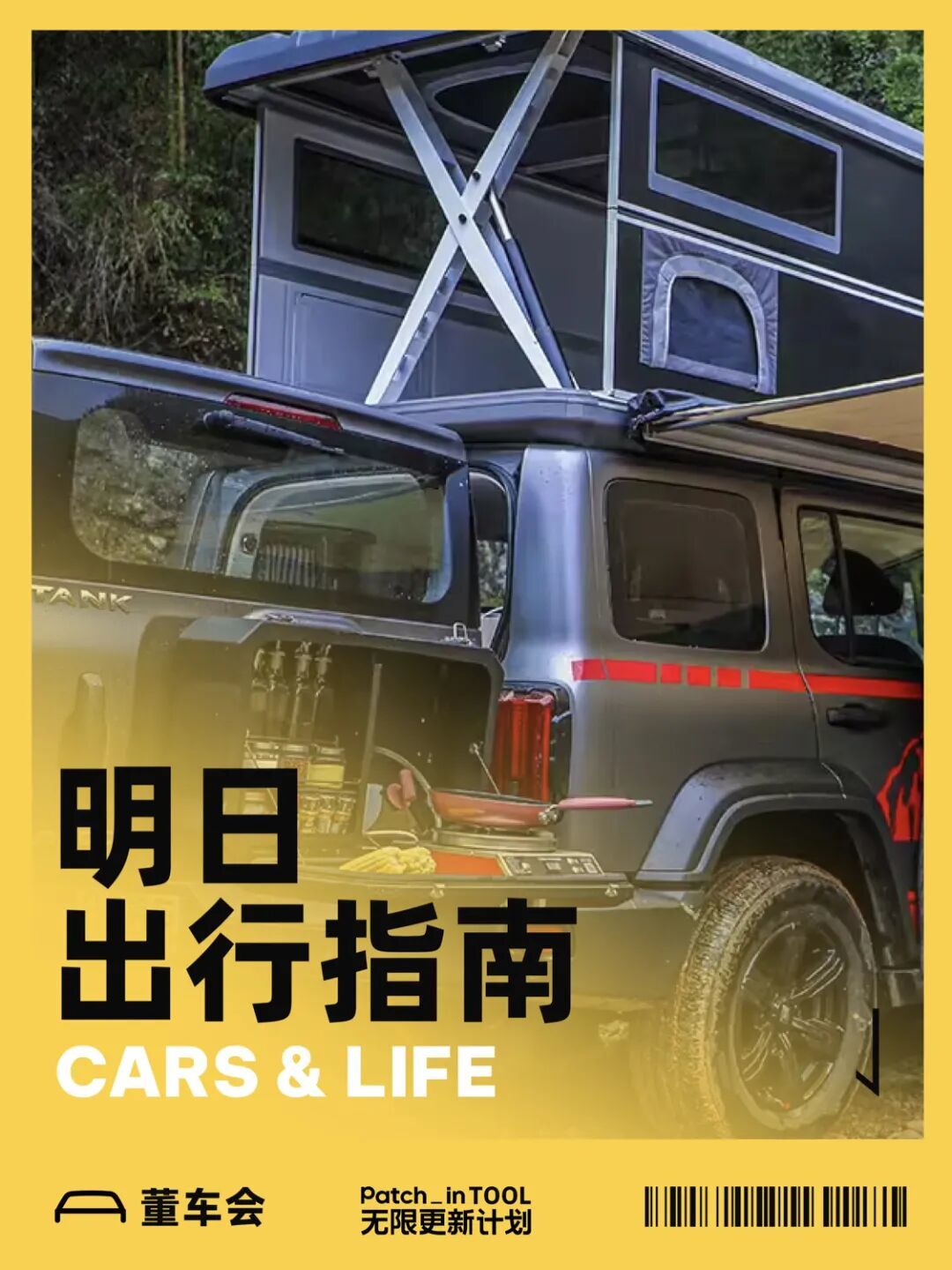 内饰方面,15.6 英寸 2.5K 中控屏、70 英寸 AR-HUD、高通骁龙 8255 芯片、7.5L 冷暖冰箱、21 扬声器音响一应俱全;车顶配备经过 7000 次耐久测试的电动举升机构;160L 前备厢采用防水可冲洗设计;尾门集成轻量化折叠桌板与电磁炉接口,配合 6.6kW 对外放电能力,满足基础户外烹饪需求。