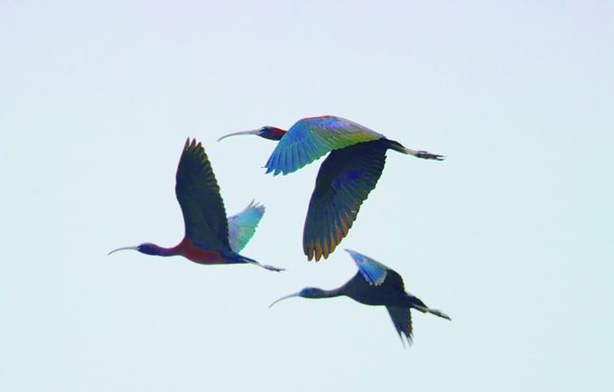 工作人员告诉记者,由于彩鹮的羽毛在阳光折射下呈现华丽的金属光泽,素有“湿地彩虹”之美誉,已被列入《世界自然保护联盟濒危物种红色名录》,此前曾一度被认为在中国野外绝迹。这一发现标志着保护区生物多样性保护取得新成效。