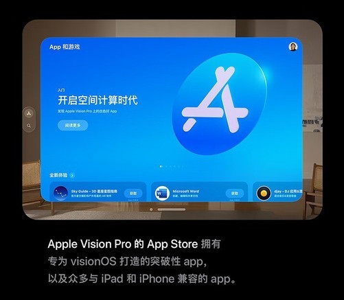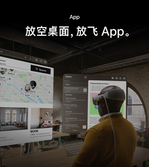 它可实现无边界显示,应用程序窗口可随意安排和缩放;能把房间转换为个人影院,搭配SpatialAudio带来绝佳观影体验;支持多种交互方式,如FaceTime视频互动、与Mac电脑衔接内容;EyeSight功能可显示使用者眼睛,方便与周围人交流。