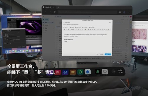 在应用生态方面,拥有全球领先的mr/vr应用生态,全面覆盖影音娱乐、办公、生产力等多种场景。并且,pico互联得到升级,与pc/mac及手机之间无缝跨屏互联,方便用户在不同设备间切换,共享屏幕并远程操作,真正成为集多功能娱乐与工作平台于一体的强大设备。