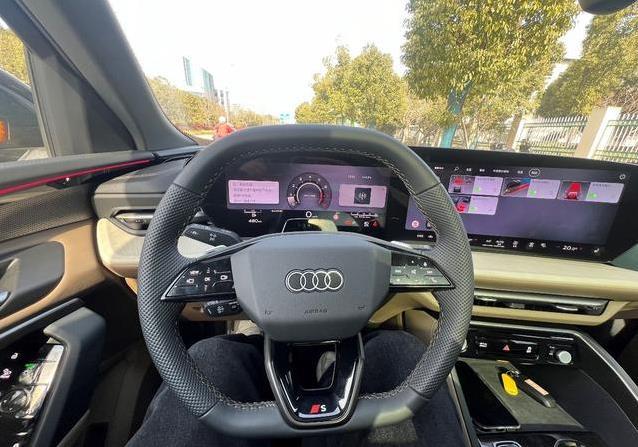 底盘这块保持了奥迪一贯的扎实劲儿,小颠簸过滤得中规中矩,不像有些车软得像棉花糖,但大坑或者过减速带时,悬挂韧性好,车身一下就稳住,不会晃来晃去。过弯支撑到位,开快了也不飘,侧倾控制得住,方向盘转向轻重合适,低速好打方向,高速稳当,跟车头指向性匹配得自然。刹车脚感线性,带能量回收但不突兀,轻轻一踩就知道力度,容易上手。噪音控制一般,风噪在高速明显,粗路面胎噪也传进来,发动机猛加油时声音不算悦耳,但整体不算吵闹,日常通勤能接受。
